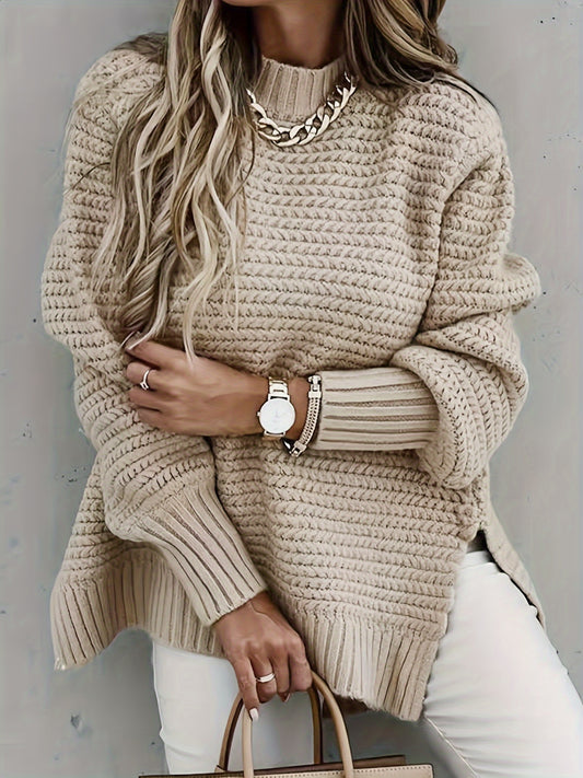 Cozy Solid Knitted Sweater with Side Split Detail