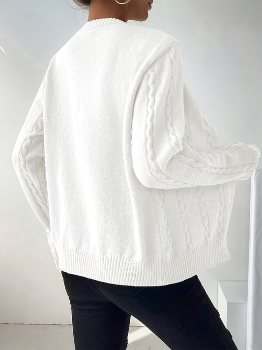 Regular price €18.79Regular priceUnit price / perSale price €18.79Button Front Cable Knit Cardigan - Casual Long Sleeve Sweater