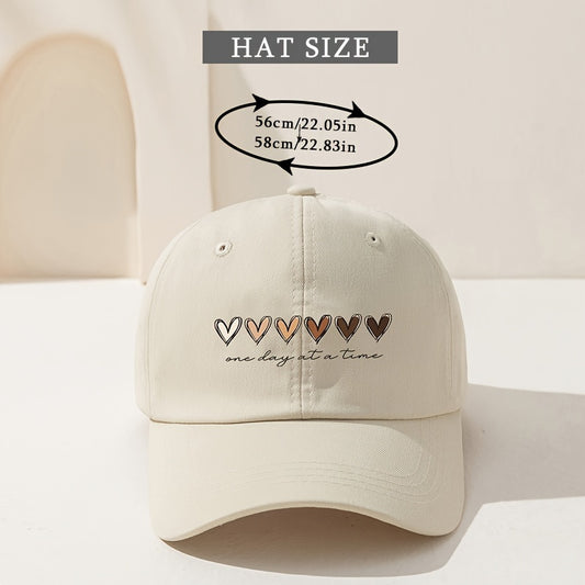 "One Day At A Time" Gradient Hearts Baseball Cap - Unisex, Adjustable Size, Breathable Peaked Hat